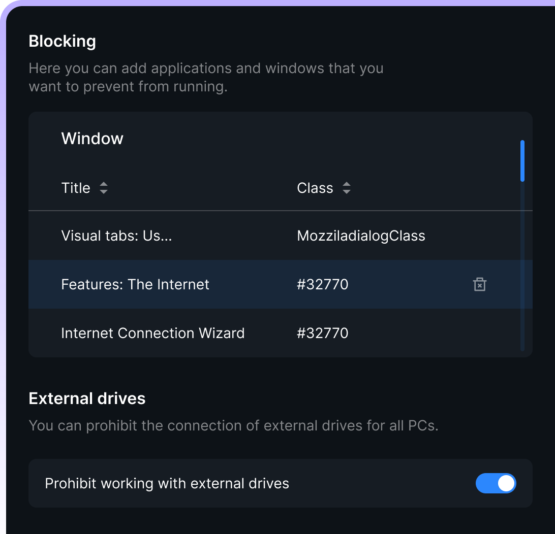 Blocking pop-ups and external storage devices
