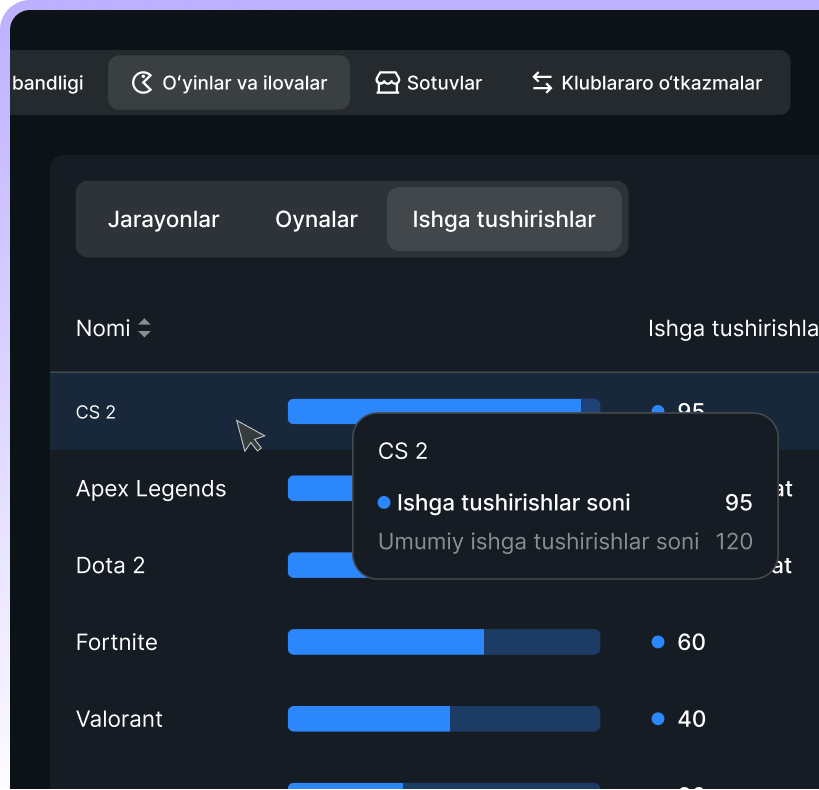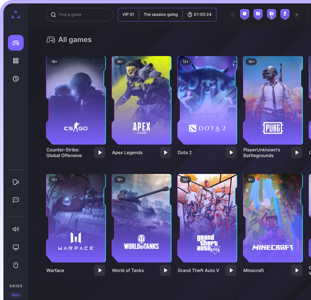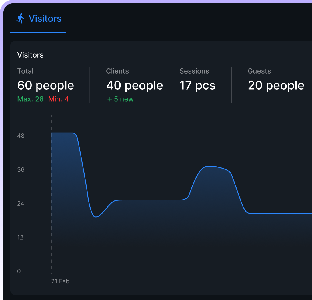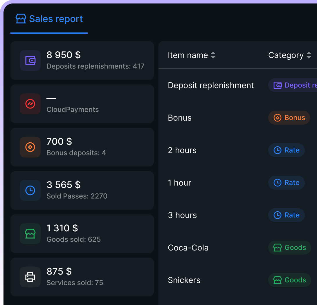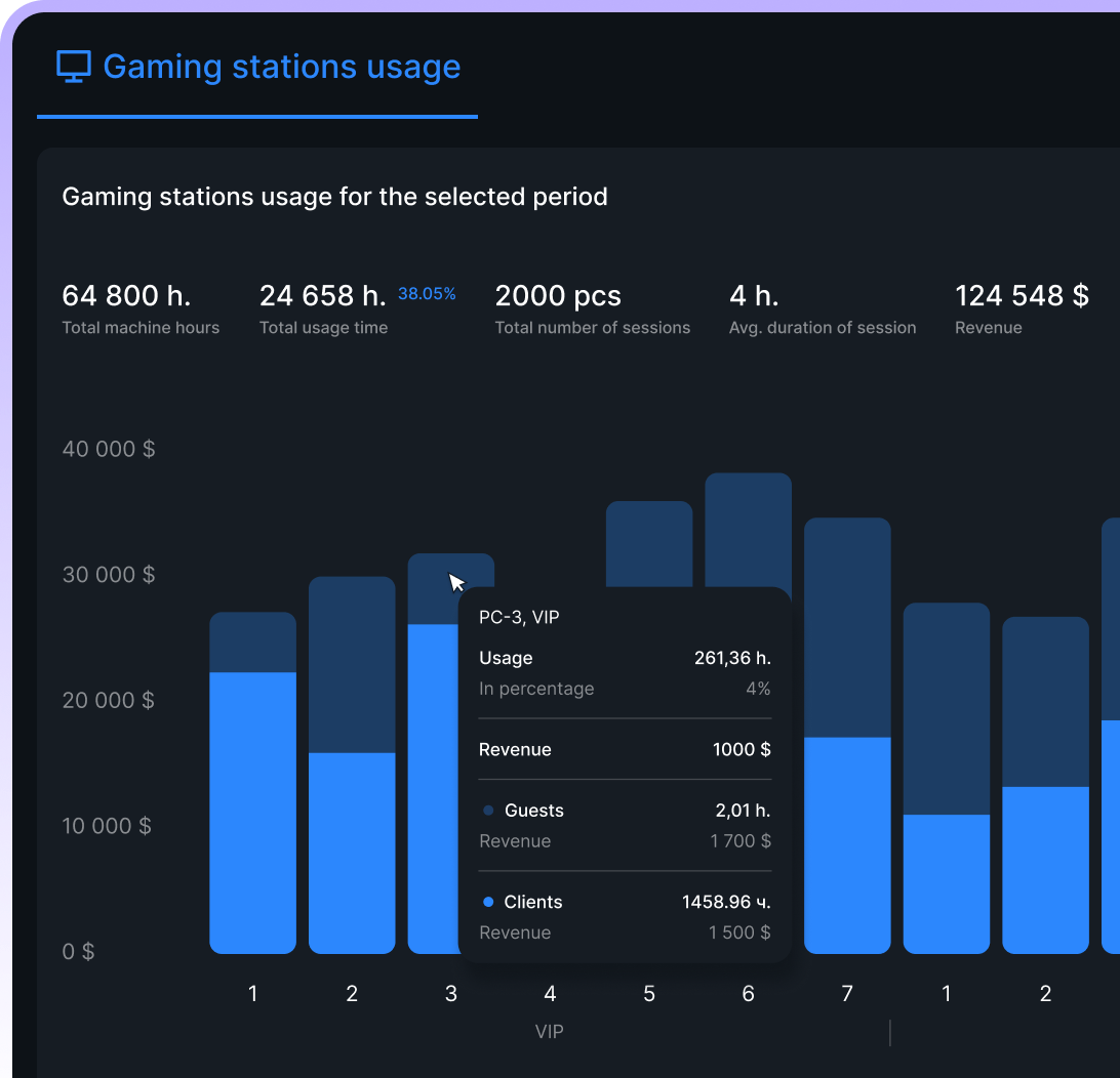 An interactive map of the gaming center with data on gaming station occupancy and rates to make your work a breeze