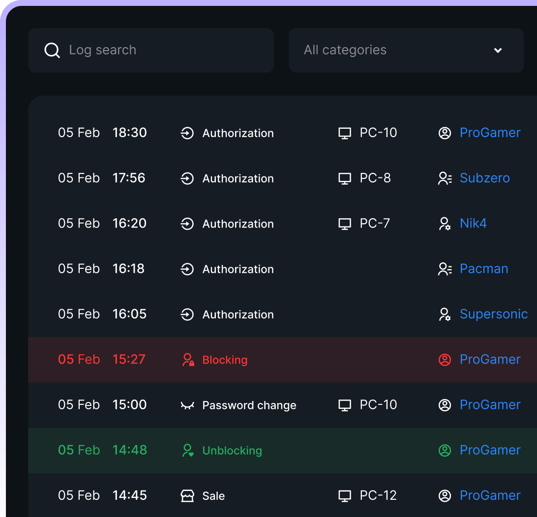 Organize and supervise your employees' tasks to optimize gaming center operation